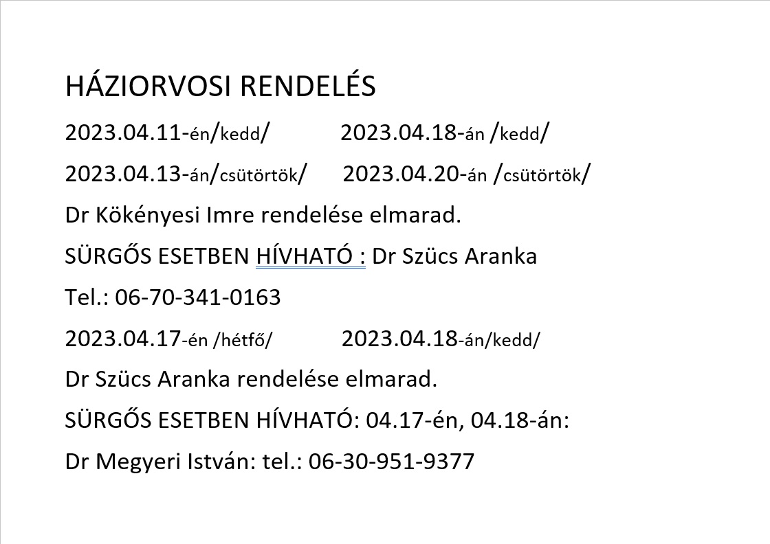 2023. április hónapban rendelési idő változás!