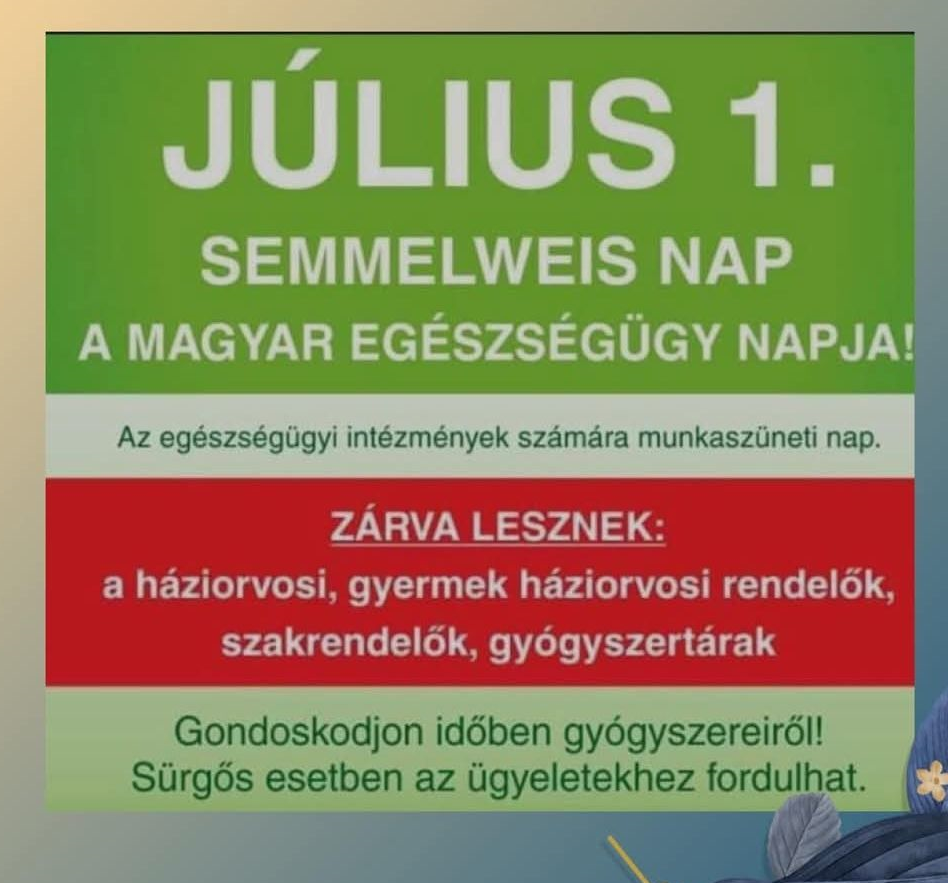 2025.07.01-én a rendelés elmarad Semmelweis nap alkalmából .