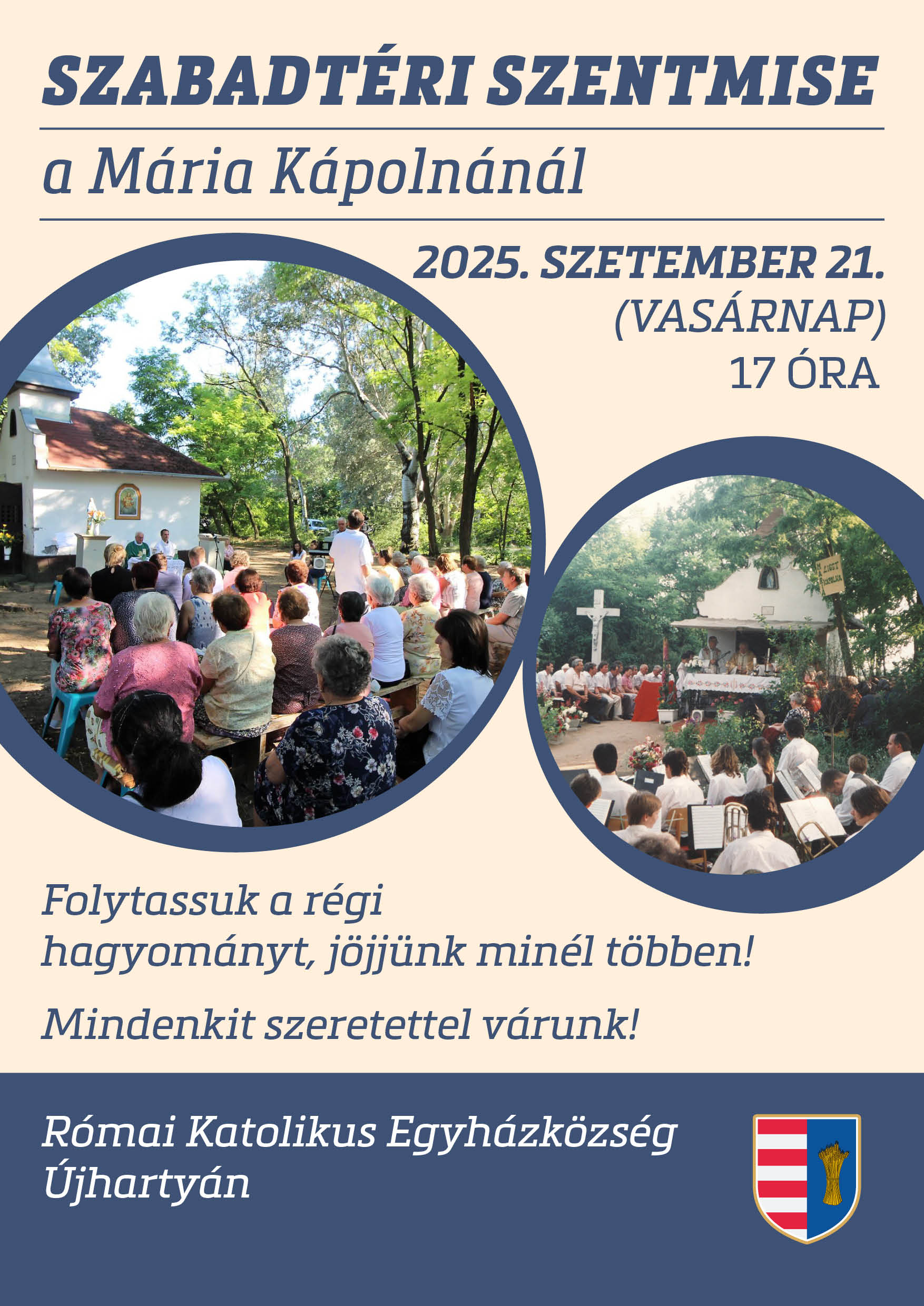 Szeptember 21-én, vasárnap 17 órakor újra együtt ünneplünk a Mária Kápolnánál.
